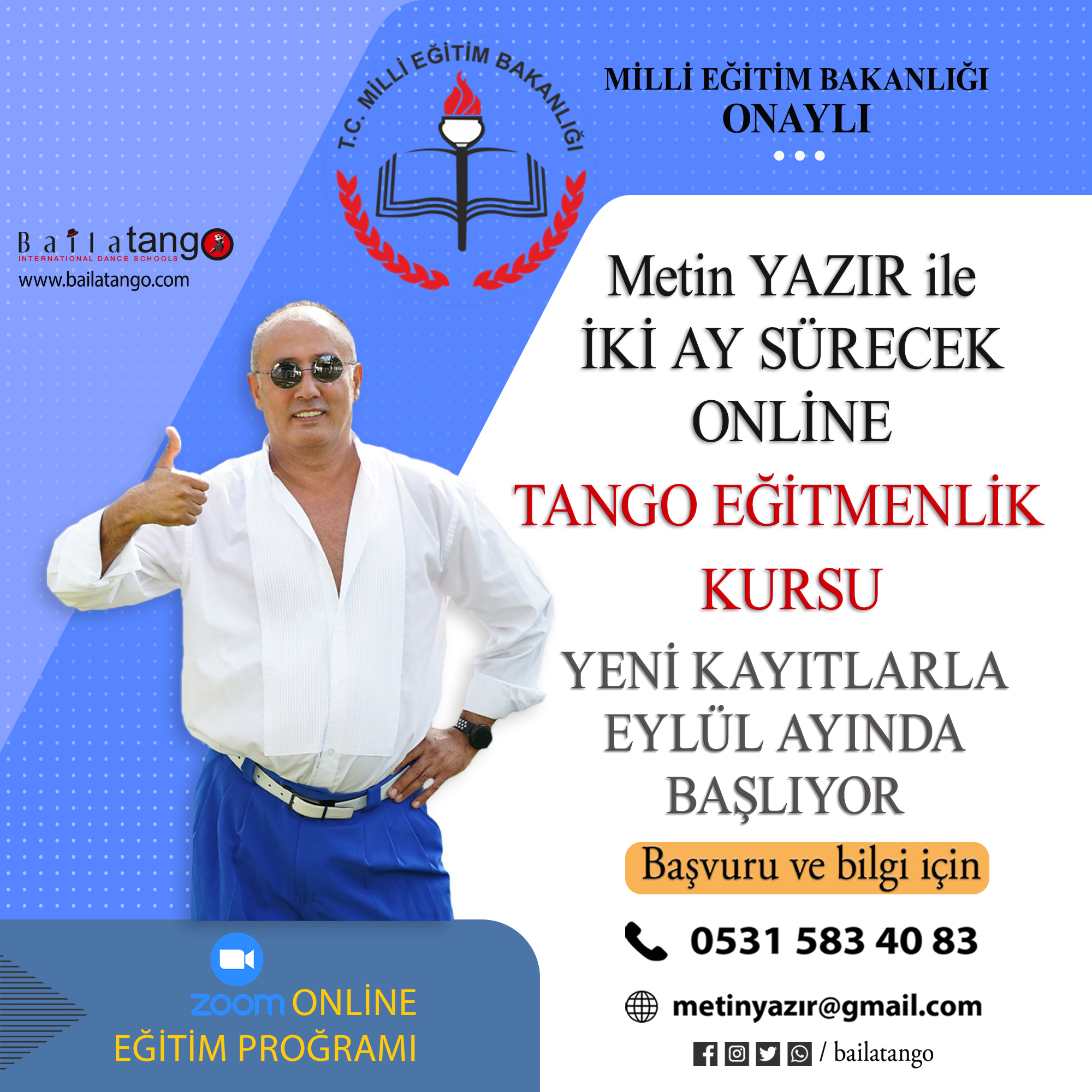 Milli Eğitim Bakanlığı Onaylı TANGO EĞİTMENLİK KURSU Bu yıl EYLÜL Ayında başlıyor Türkiye’ye Tango dansını getiren tanıtan sevdiren hocaların hocası dünyaca ünlü hocamız , METİN YAZIR yönetiminde gerçekleşecek programımız online ve yüz yüze eğitim seçenekleri ile başlıyor. Dansınızı sanat ve sporla birleştirerek ister